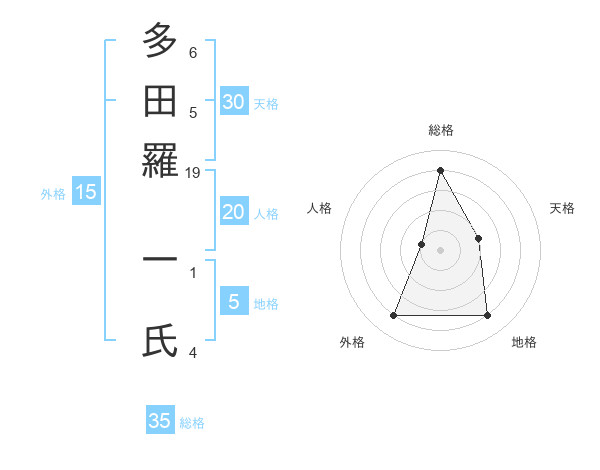 多田羅 一氏さんを姓名の画数から五運を鑑定
