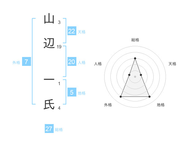 山辺 一氏さんを姓名の画数から五運を鑑定