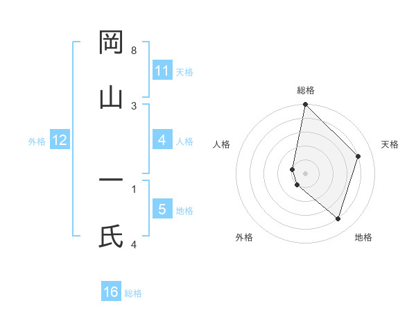 岡山 一氏さんを姓名の画数から五運を鑑定