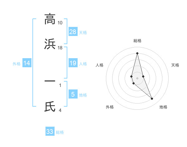 高浜 一氏さんの地格は5画の4点!