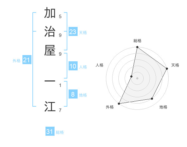 加治屋 一江さんの総格は31画の5点