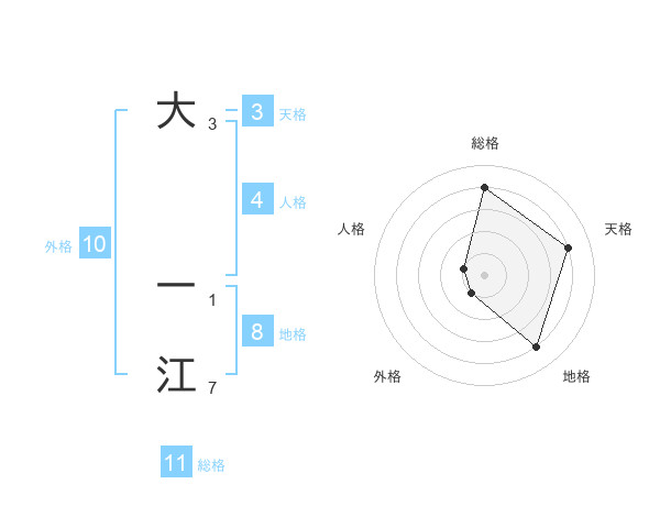 大 一江さんの総格は11画の4点!