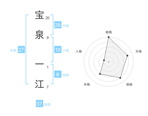 宝泉 一江さんの総格は37画の5点!