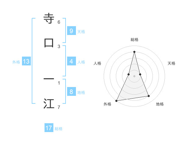 占い結果は姓名判断である以上、良い場合も悪い場合もありますが、決してお名前を誹謗中傷するものでなく、画数の自動計算によって得られたものです。また、本サイトの検索によって得られた鑑定結果で、第三者を誹謗中傷したり名誉を棄損するような行為を禁じます。