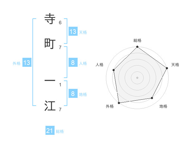 寺町 一江さんの総格は21画の5点!