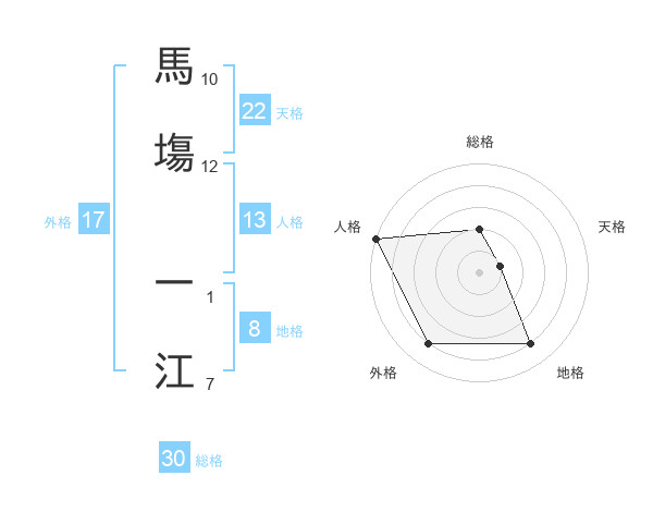 馬塲 一江さんを姓名の画数から五運を鑑定