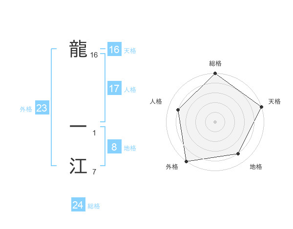 龍 一江さんの外格は23画の5点!