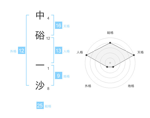 中硲 一沙さんを姓名の画数から五運を鑑定