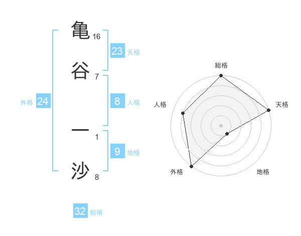 亀谷 一沙さんを姓名の画数から五運を鑑定