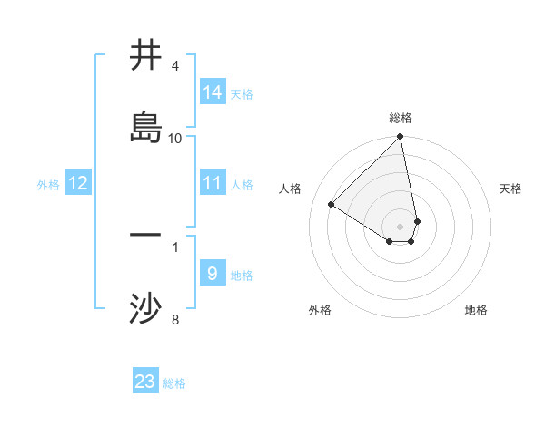 井島 一沙さんの総格は23画の5点!