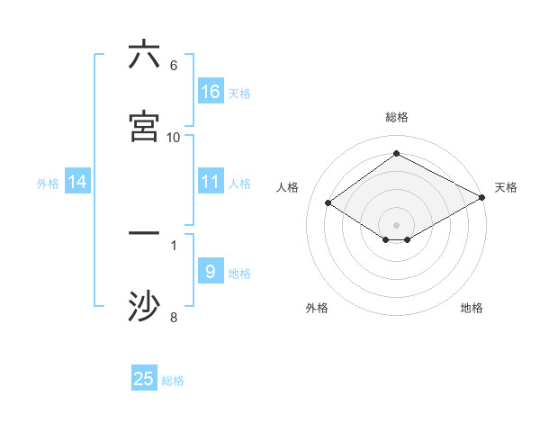 六宮 一沙さんの総格は25画の4点!