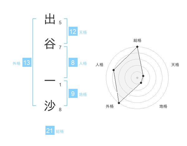 出谷 一沙さんを姓名の画数から五運を鑑定