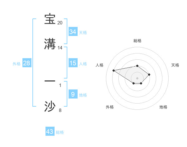 宝溝 一沙さんの総格は43画の2点!