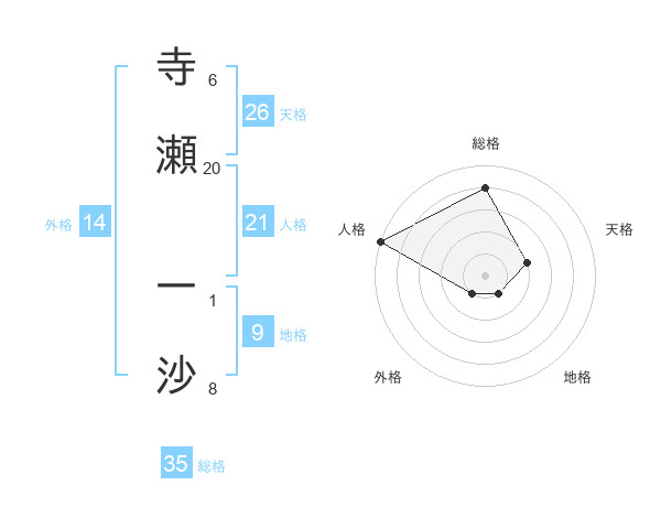 寺瀬 一沙さんの天格は26画の2点!