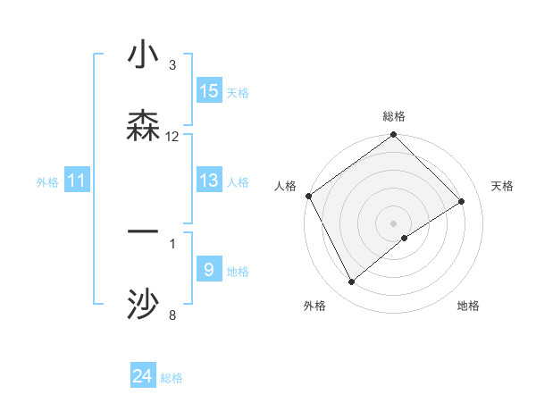 小森 一沙さんの天格は15画の4点!