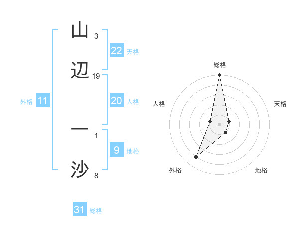山辺 一沙さんの総格は31画の5点!