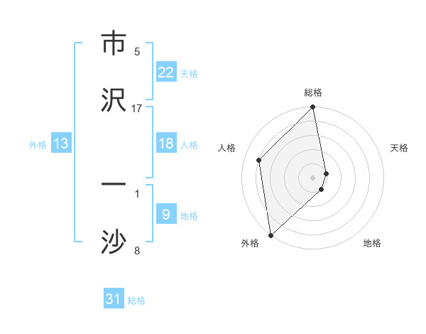 市沢 一沙さんを姓名の画数から五運を鑑定