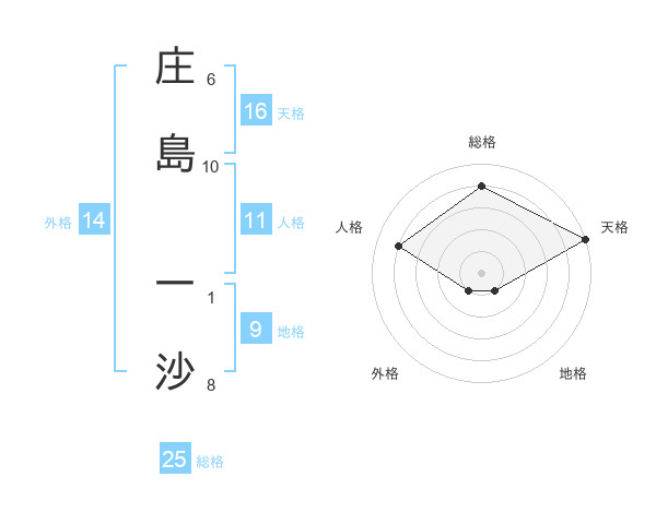 庄島 一沙さんを姓名の画数から五運を鑑定