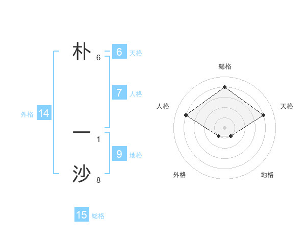 朴 一沙さんの総格は15画の4点!