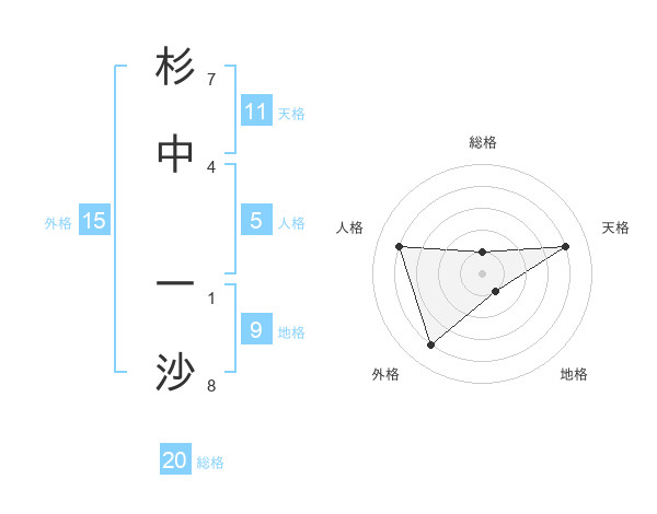 杉中 一沙さんを姓名の画数から五運を鑑定