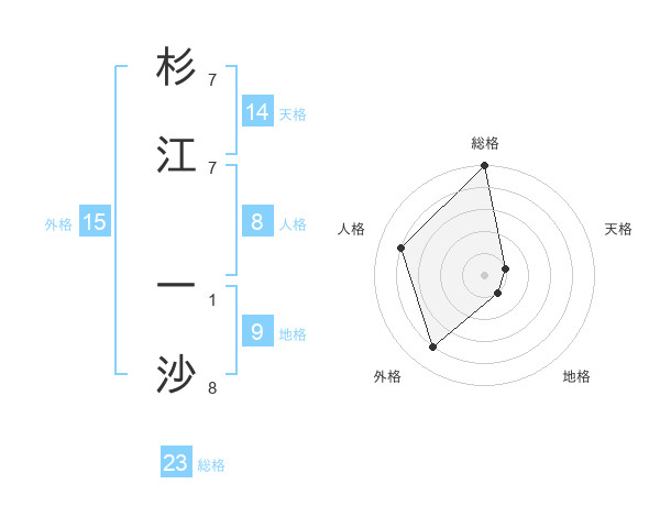 杉江 一沙さんを姓名の画数から五運を鑑定