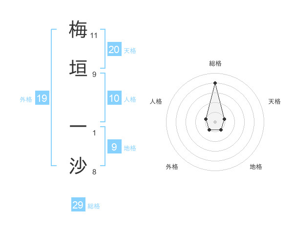 梅垣 一沙さんの総格は29画の4点!