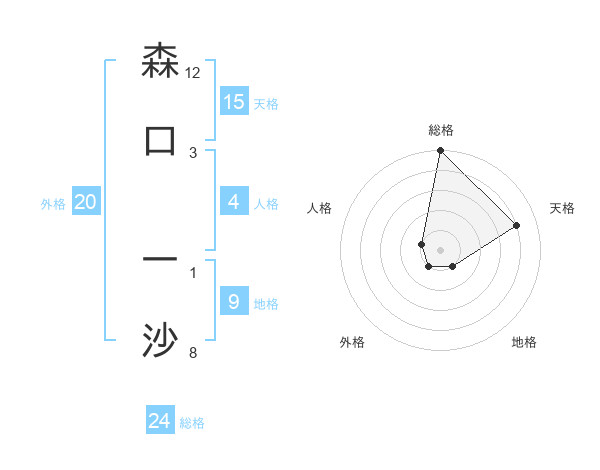 森口 一沙さんの総格は24画の5点!