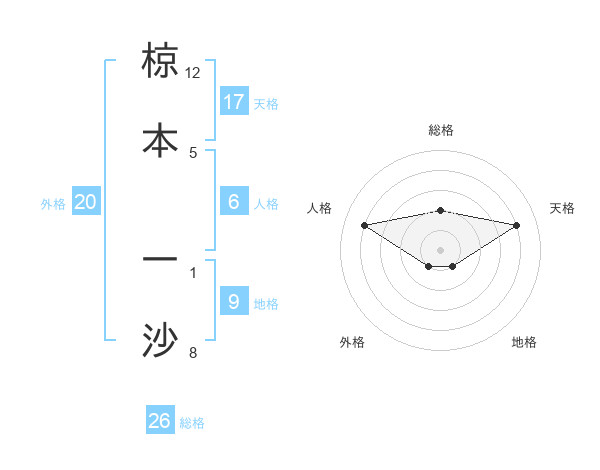 椋本 一沙さんを姓名の画数から五運を鑑定