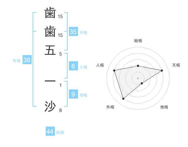 歯歯五 一沙さんの外格は38画の4点!