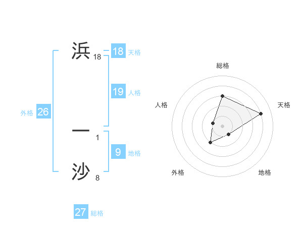 浜 一沙さんの総格は27画の3点!