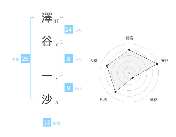 澤谷 一沙さんを姓名の画数から五運を鑑定