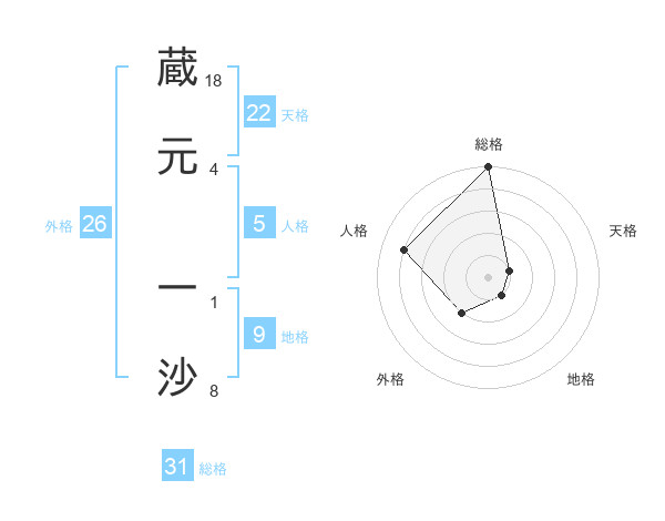 蔵元 一沙さんの総格は31画の5点!