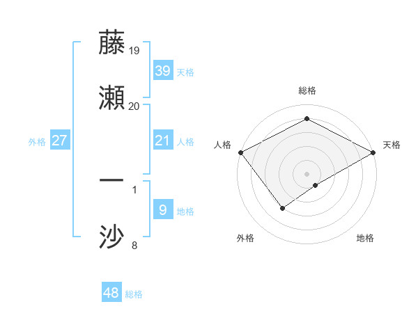 藤瀬 一沙さんの天格は39画の5点!