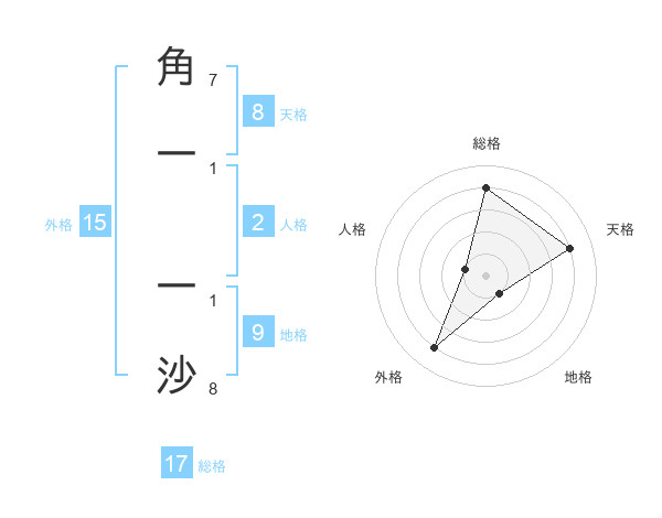 角一 一沙さんの総格は17画の4点!