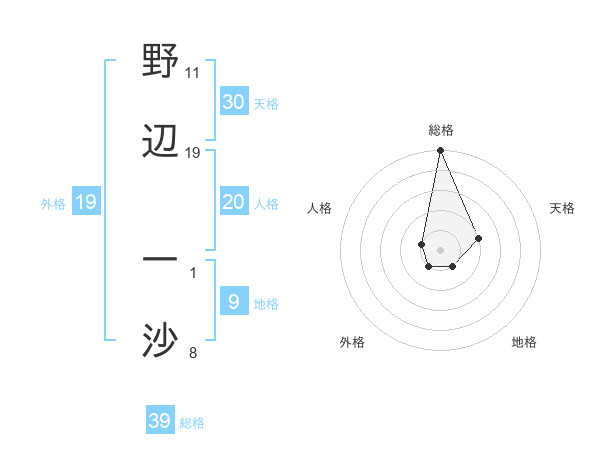 野辺 一沙さんを姓名の画数から五運を鑑定
