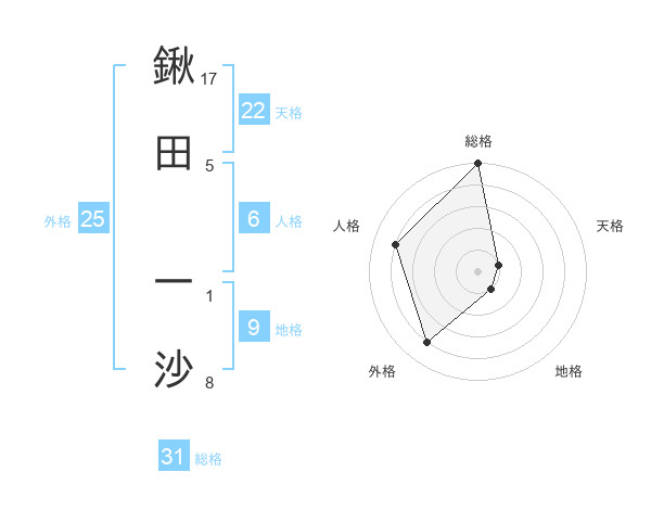 鍬田 一沙さんの総格は31画の5点!