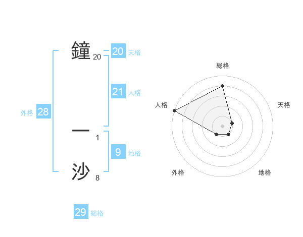 鐘 一沙さんの総格は29画の4点!