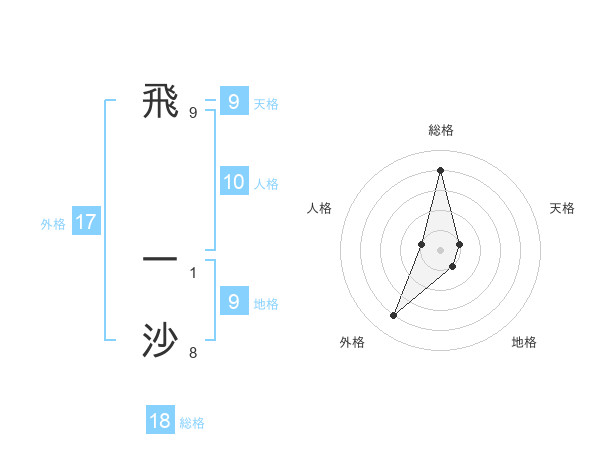 飛 一沙さんの総格は18画の4点!