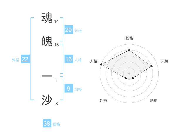 魂魄 一沙さんの総格は38画の4点!