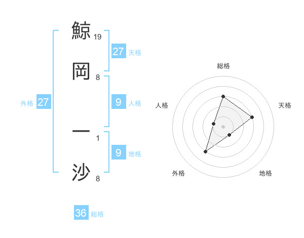 鯨岡 一沙さんの天格は27画の3点!