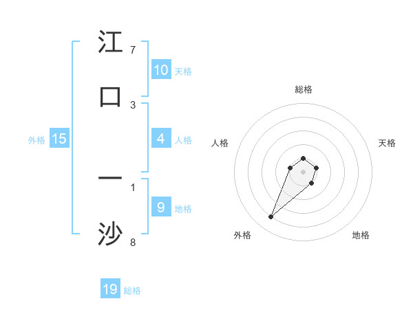 江口 一沙さんの外格は15画の4点!
