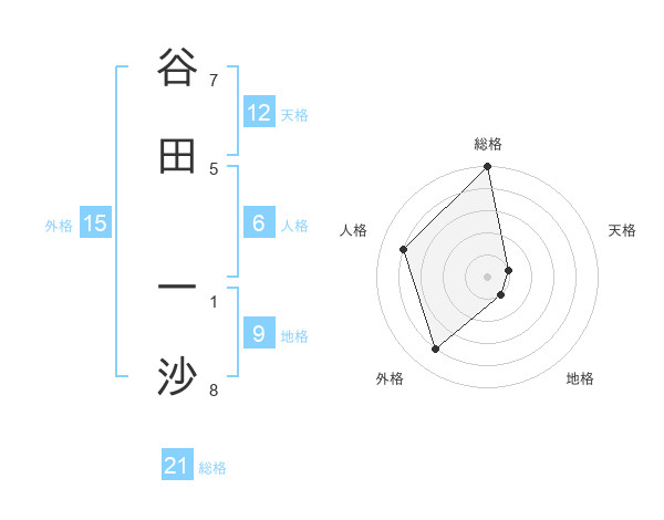 谷田 一沙さんを姓名の画数から五運を鑑定