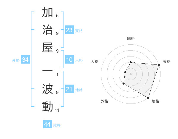 加治屋 一波動さんを姓名の画数から五運を鑑定