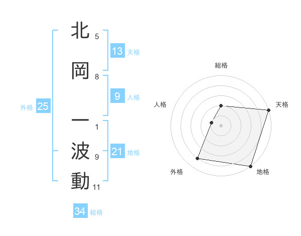 北岡 一波動さんの地格は21画の5点!