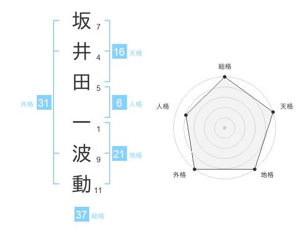 坂井田 一波動さんを姓名の画数から五運を鑑定