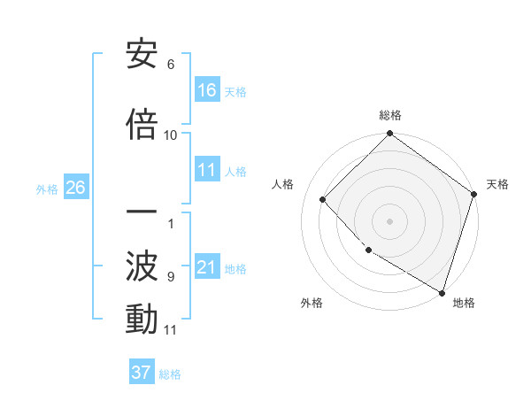 安倍 一波動さんを姓名の画数から五運を鑑定