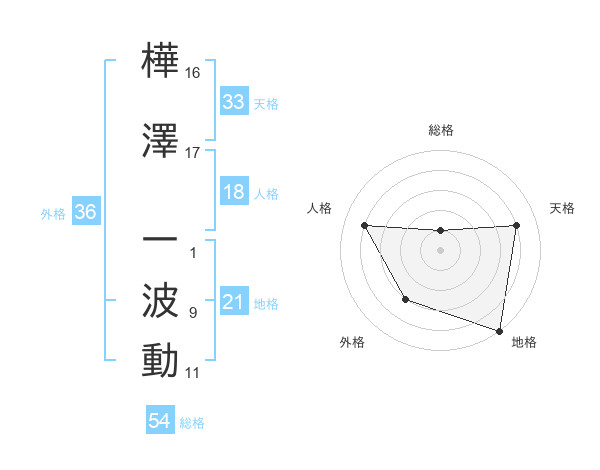樺澤 一波動さんを姓名の画数から五運を鑑定