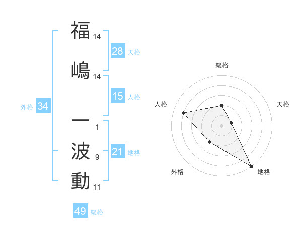 福嶋 一波動さんの総格は49画の2点!