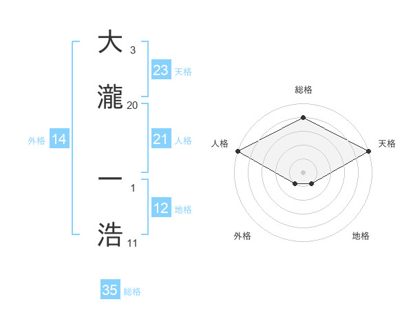大瀧 一浩さんを姓名の画数から五運を鑑定
