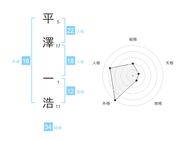 平澤 一浩さんを姓名の画数から五運を鑑定